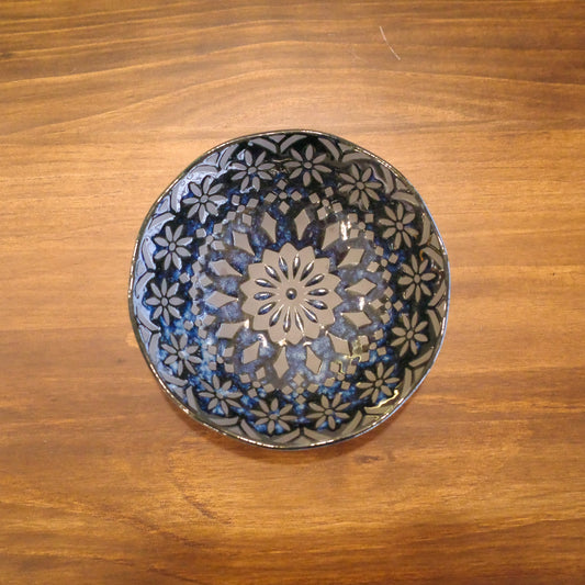 日本製 美濃燒 深藍色 波希米亞圖案沙律碗