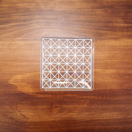 5" square geometry pattern plate | 5寸方形透底玻璃碟