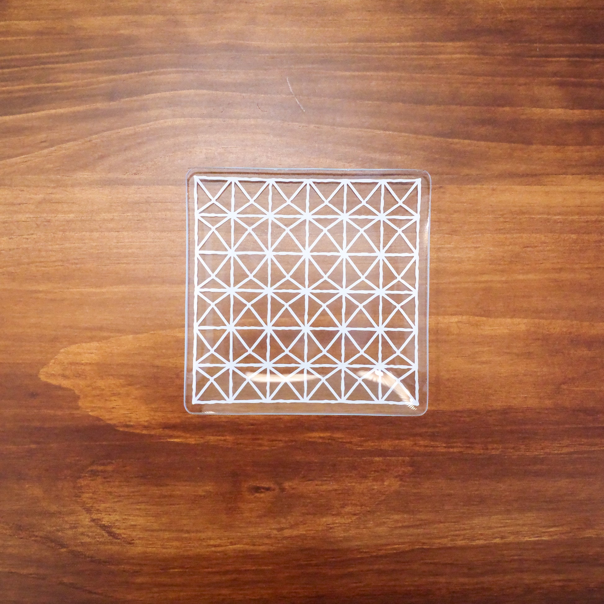 5" square geometry pattern plate | 5寸方形透底玻璃碟